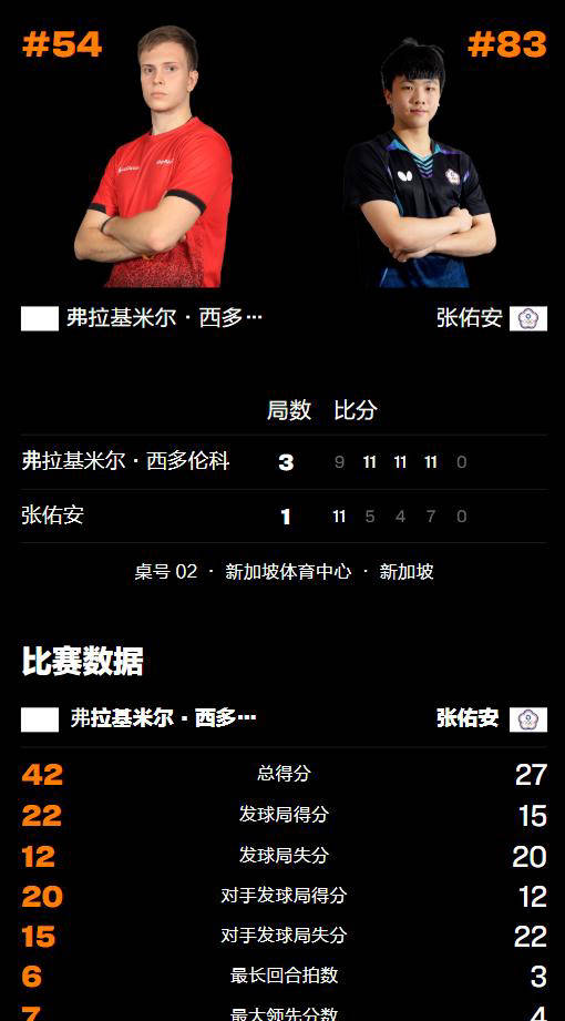 从打法分析来看,希德仁科展现出欧洲运动员典型的速度和冲击力优势,前三板技术灵活,攻击积极,而张佑安虽然敢于拼杀,但面对力量和技术兼备的欧洲强手,他在单板质量方面仍显不足,这次失利可谓理所当然。