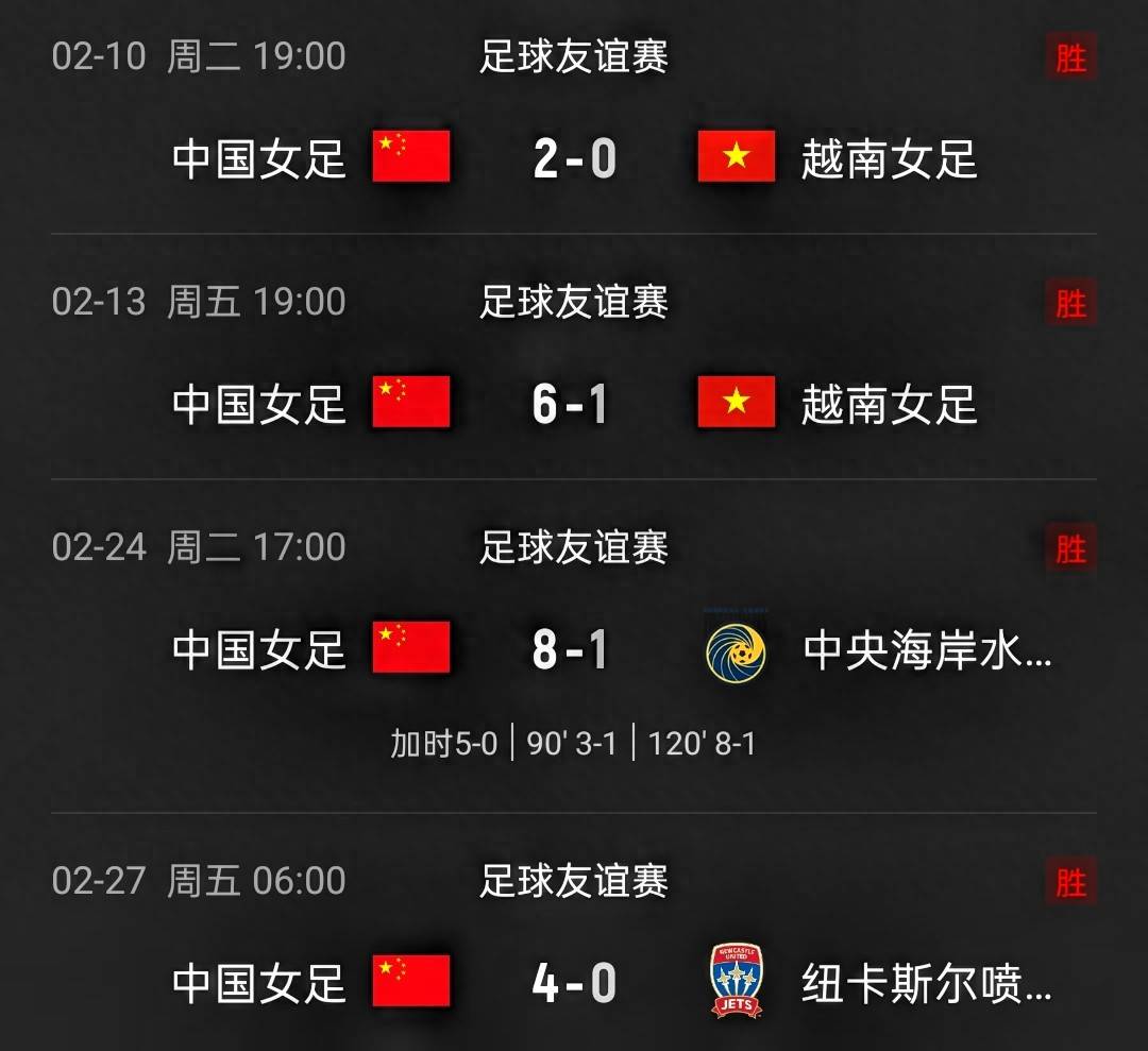 整个2月份,中国女足一共进行了4场热身赛,相较于此前0-8负于英格兰女足的状态不佳,中国女足近期的整体状态明显提升,在热身赛中也取得了连续胜利。在稍早对阵越南女足的两场比赛中,中国队分别以2-0和6-1击败对手,作为上届女足亚洲杯的8强球队,越南女足的整体实力不俗,能够连续击败对手,也说明中国女足目前仍具备较强的竞争力。