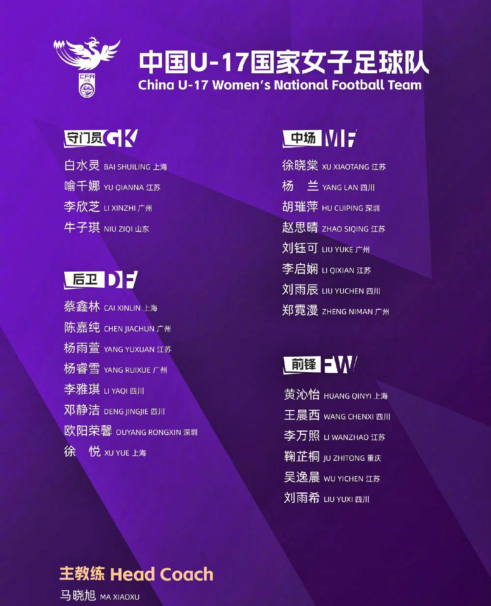 本届赛事将在苏州举办,主场作战的中国U17女足由马晓旭担任主教练。对于这支队伍而言,首要目标清晰:确保跻身前四,锁定2026年U17女足世界杯的门票;若能在此基础上更进一步,她们也渴望借助主场之利冲击冠军。